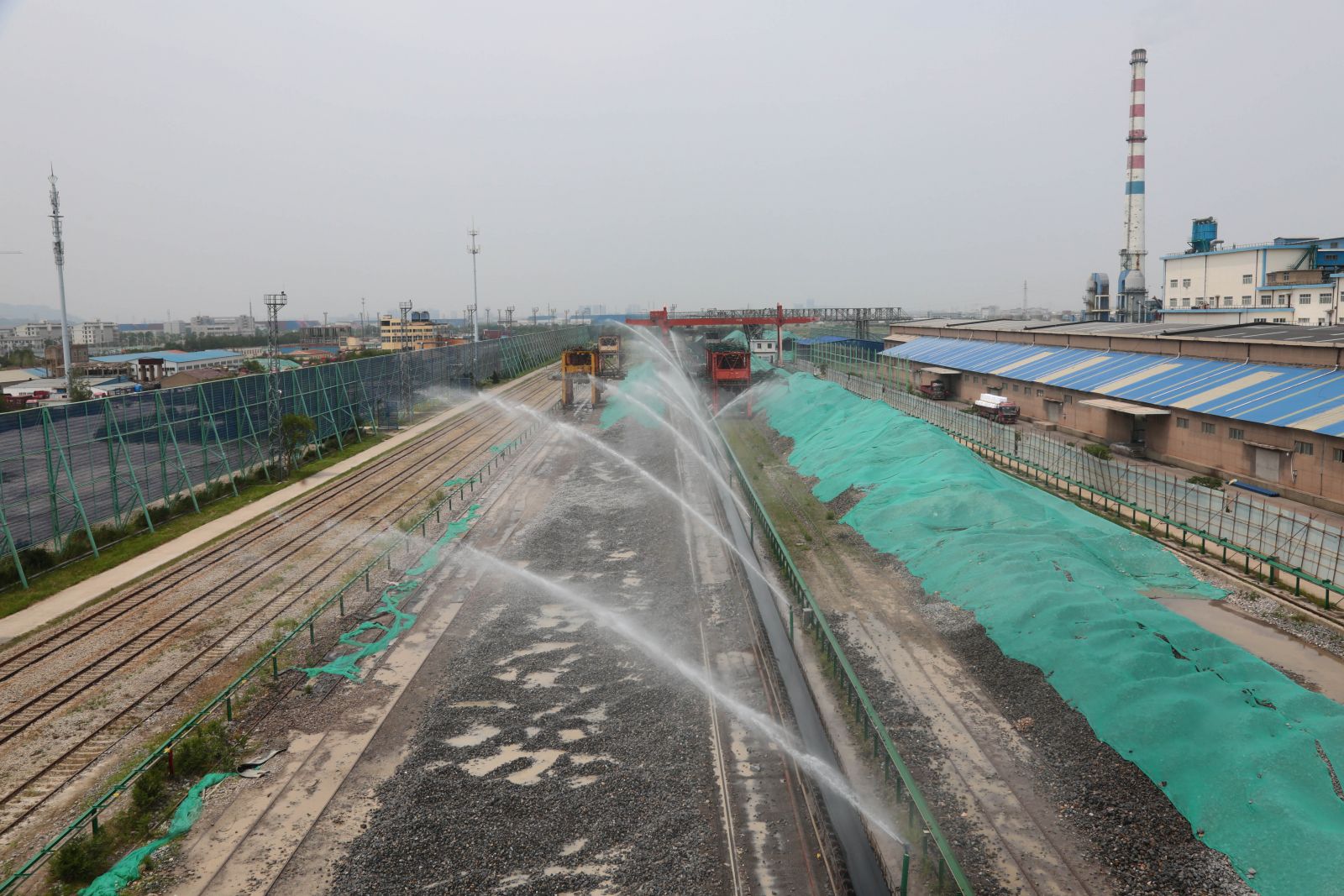 6月12日,公司定時開啟噴淋裝置,一排排的水幕準確的覆蓋在原料場地存放的石灰石、焦炭和原煤堆上,消除裝卸作業(yè)時粉塵飄散對周邊環(huán)境的影響。這是公司積極落實市委市政府開展的降塵治車、保衛(wèi)藍天行動的一種舉措。公司主動作為,對露天原料堆場進行整體覆蓋,每日定時噴水降塵,確保清潔文明生產(chǎn)。