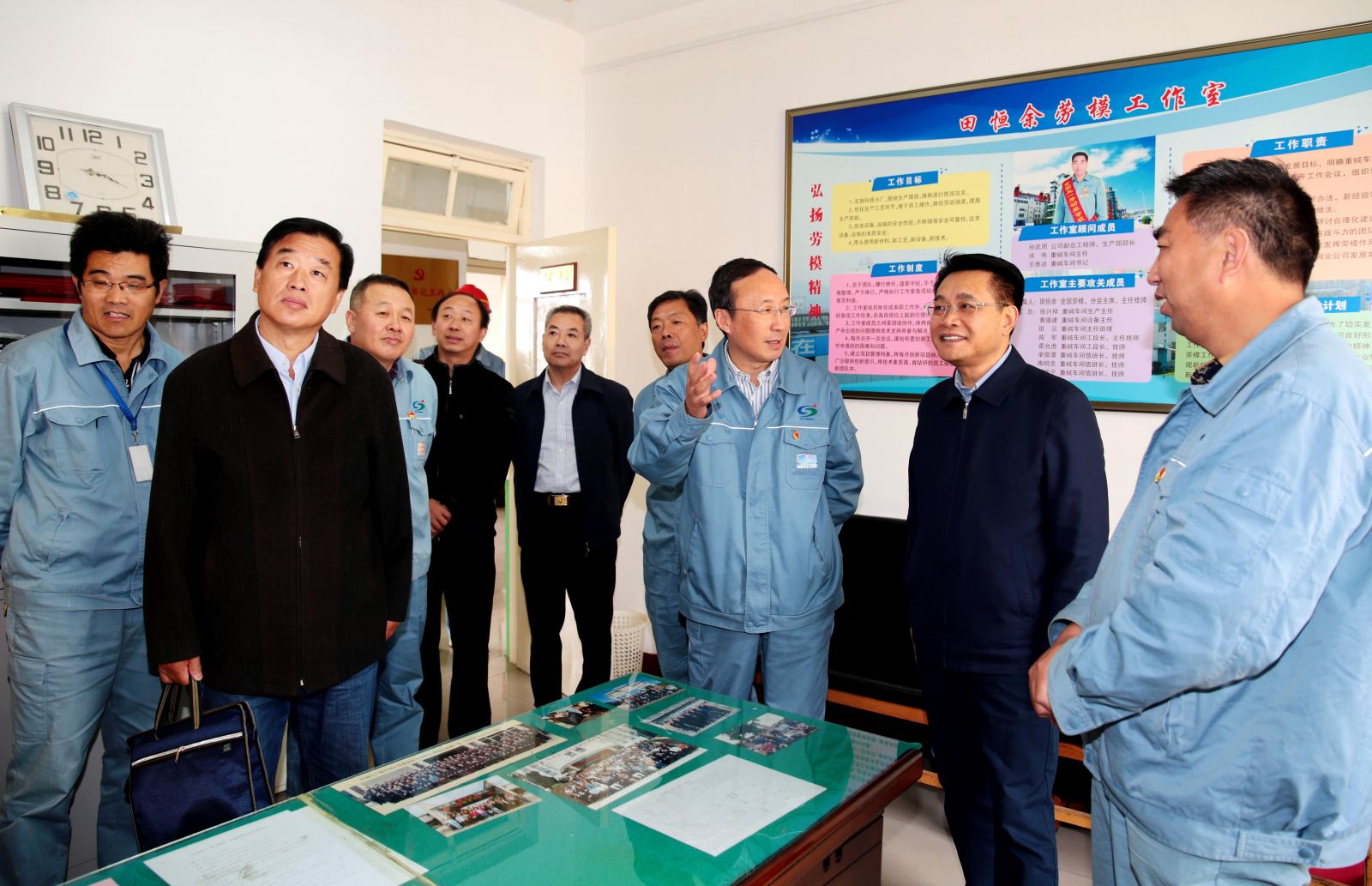 在田恒余勞模工作室,王家全詳細(xì)詢問公司勞模情況,當(dāng)他得知田恒余的“黃泥堵漏法”、“七字操作法”等小發(fā)明、小創(chuàng)造給公司帶來(lái)的豐厚經(jīng)濟(jì)效益時(shí),他指出,自己優(yōu)秀更要繼續(xù)發(fā)揚(yáng)好勞模帶頭引領(lǐng)作用,勞模工作室的關(guān)鍵在創(chuàng)新,利用好這平臺(tái),將勞模精神和技能傳承下去,為公司持續(xù)發(fā)展提供人才保障。