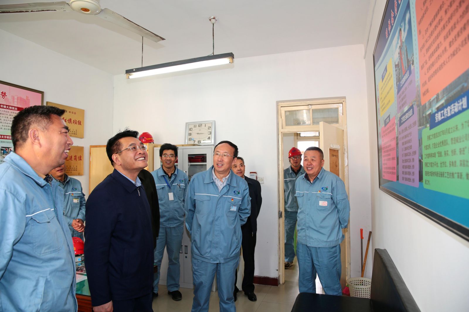 在煅燒車間職工之家,王家全查看了“優(yōu)秀合理化建議”、“巡檢之星”、“崗位練兵卡”等專欄及聽取車間重點(diǎn)介紹后,對(duì)堿業(yè)公司煅燒車間以人為本,實(shí)行民主管理的做法給予了高度肯定,建議該車間繼續(xù)推進(jìn)該項(xiàng)活動(dòng),讓職工參與民主管理,為職工搭建展現(xiàn)能力,發(fā)揮主人翁地位的平臺(tái),職工與公司共同發(fā)展,實(shí)現(xiàn)共贏。