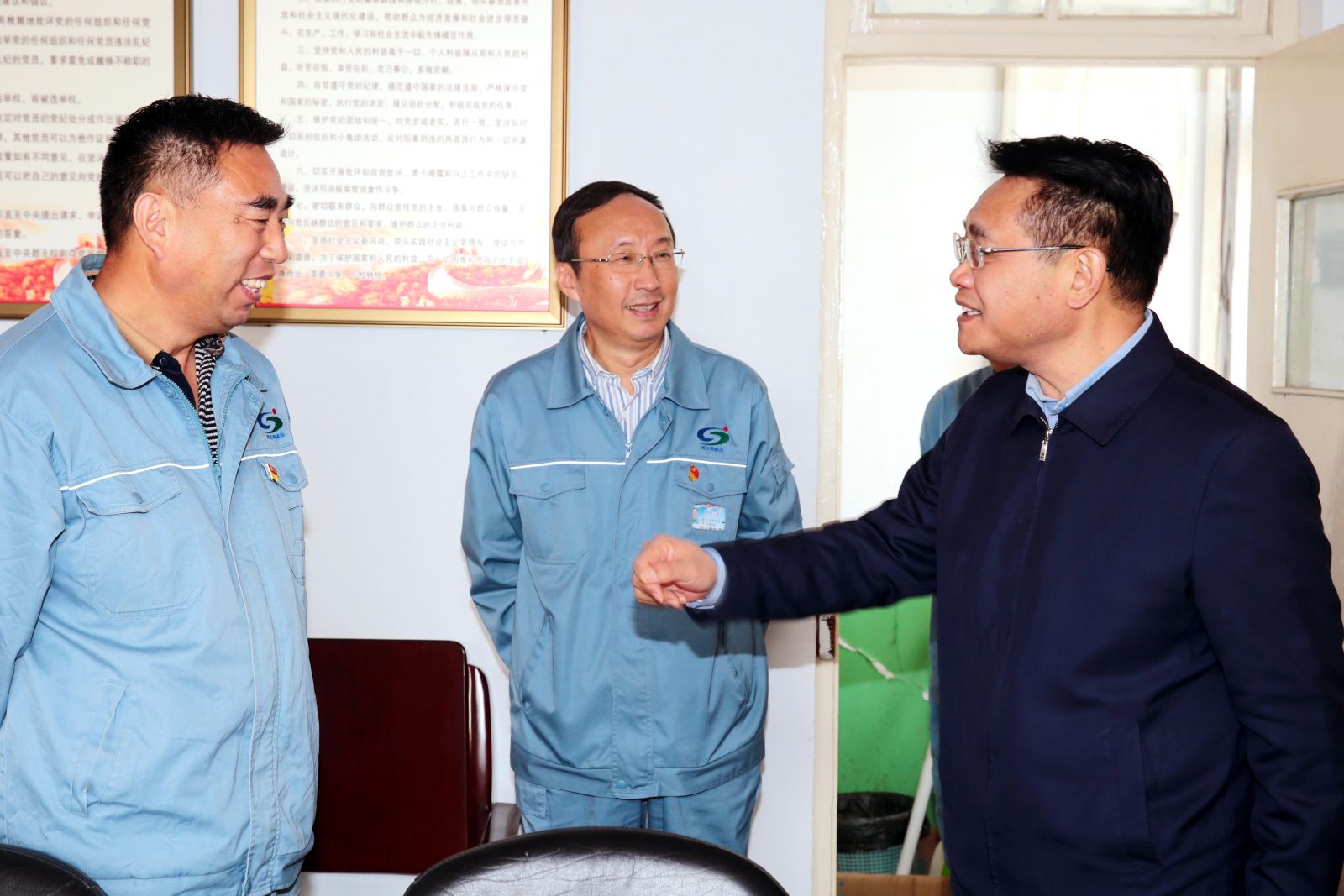 10月14日,市人大常委副主任、工會(huì)主席王家全一行深入堿業(yè)公司開展調(diào)研工作。該公司黨委書記、董事長(zhǎng)張衛(wèi)民,紀(jì)委書記、工會(huì)主席黃建德等人陪同。