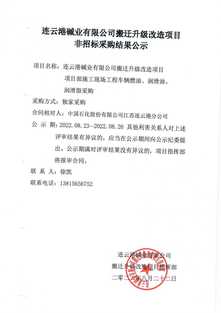 搬遷升級改造項(xiàng)目施工現(xiàn)場工程車輛燃油、潤滑油、潤滑脂采購結(jié)果公示