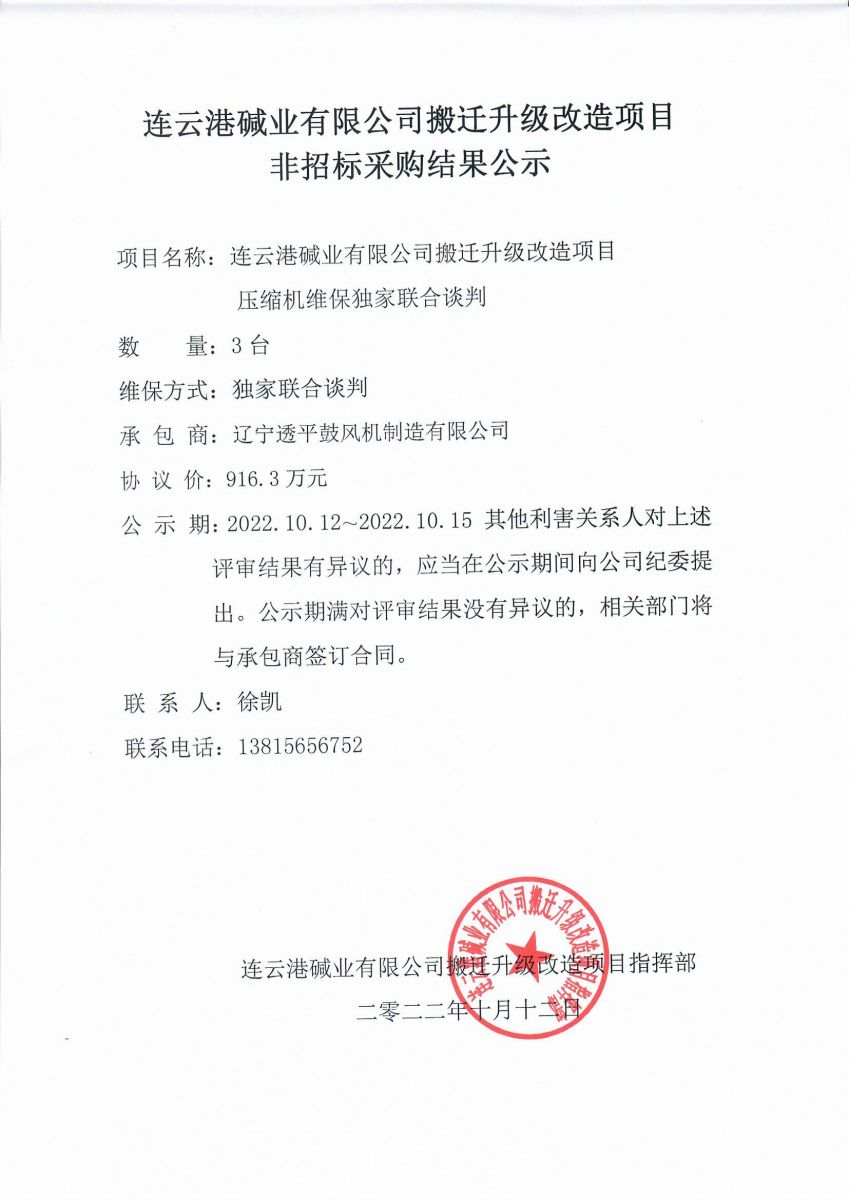 壓縮機維保獨家聯(lián)合談判結果公示