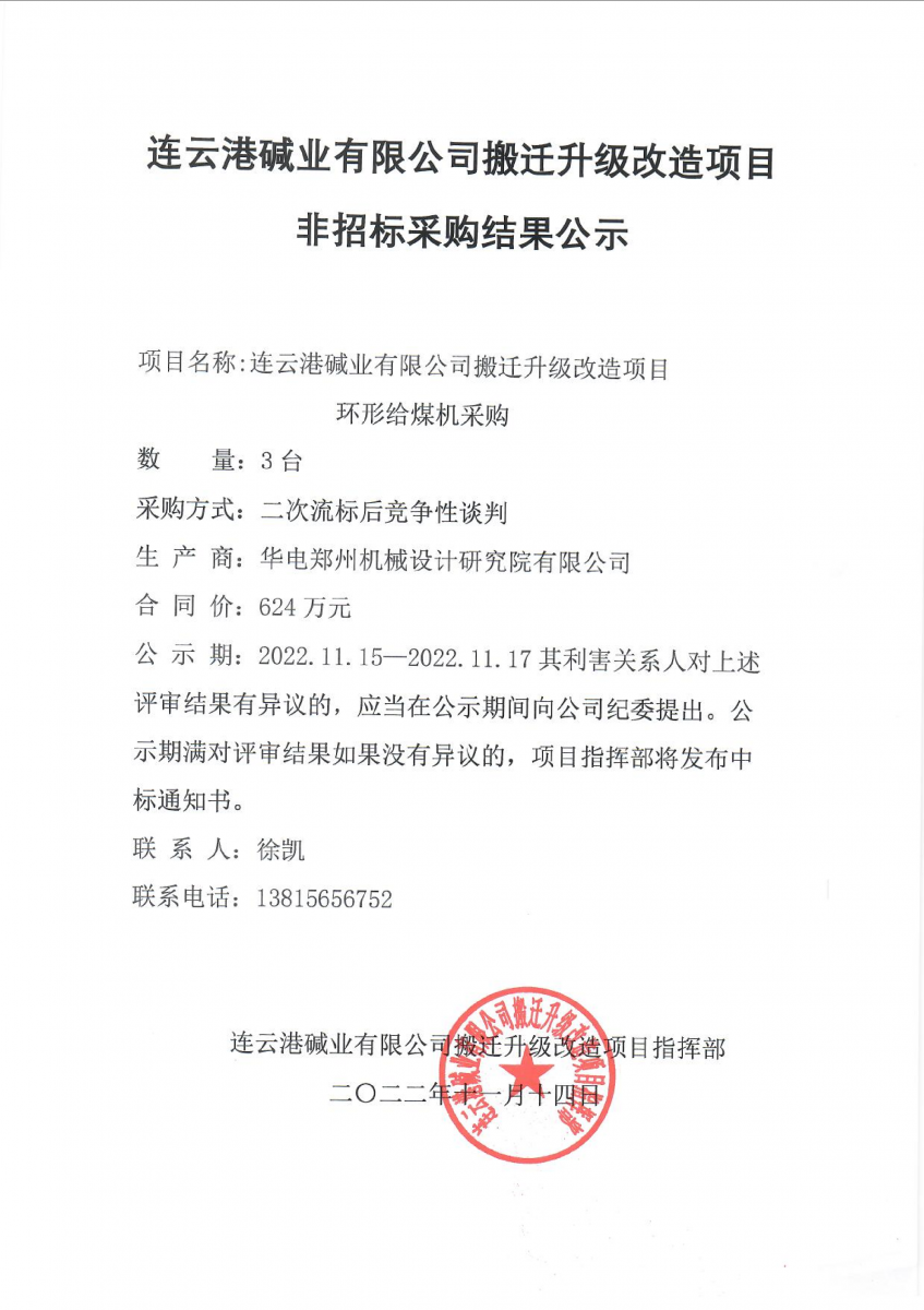 環(huán)形給煤機(jī)非招標(biāo)采購(gòu)結(jié)果公示