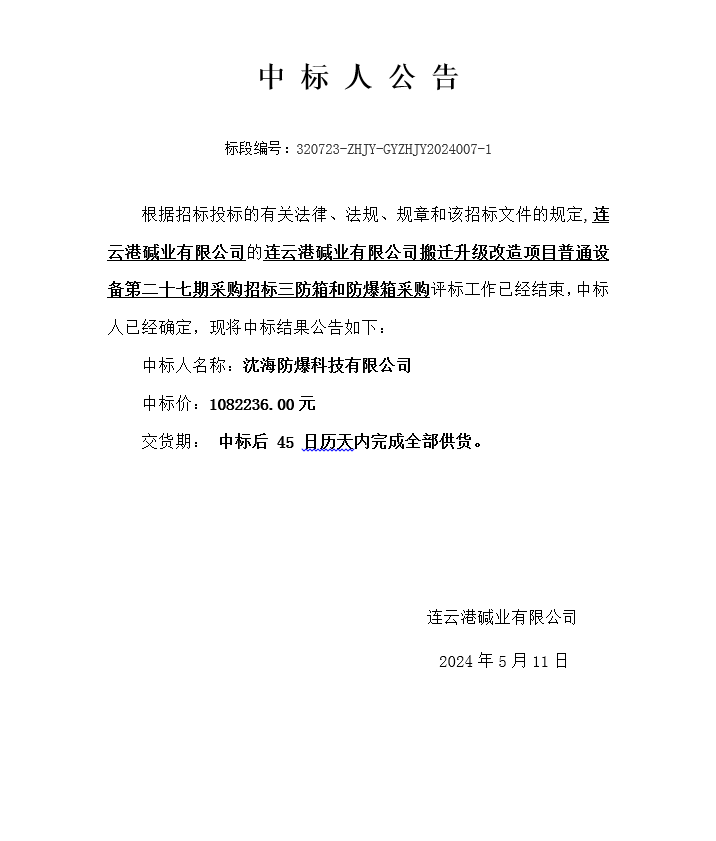 搬遷升級改造項(xiàng)目普通設(shè)備第二十七期采購招標(biāo)三防箱和防爆箱采購中標(biāo)人公告